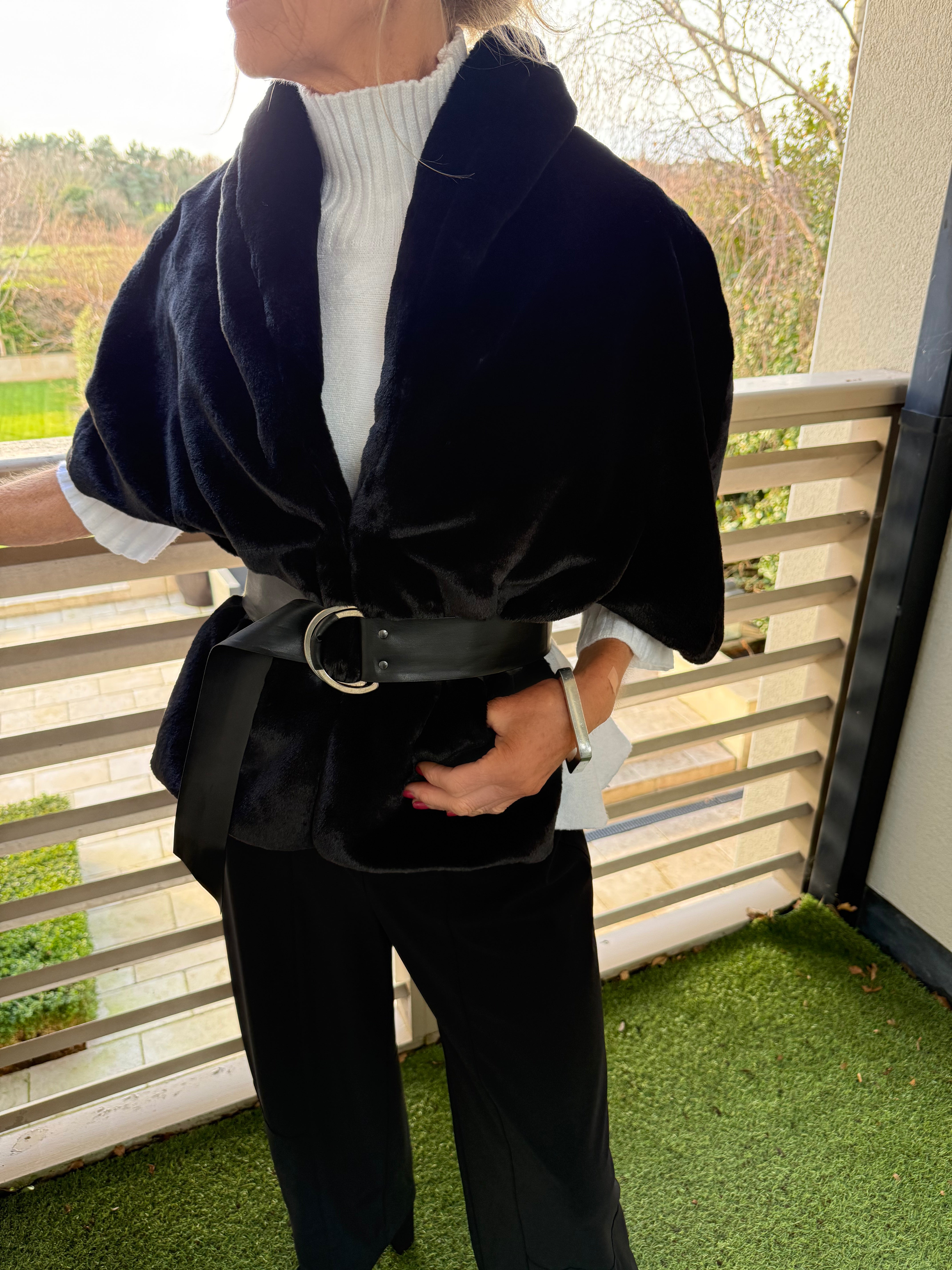 A statement layer for day or night, this plush faux fur jacket brings elegance with ease.