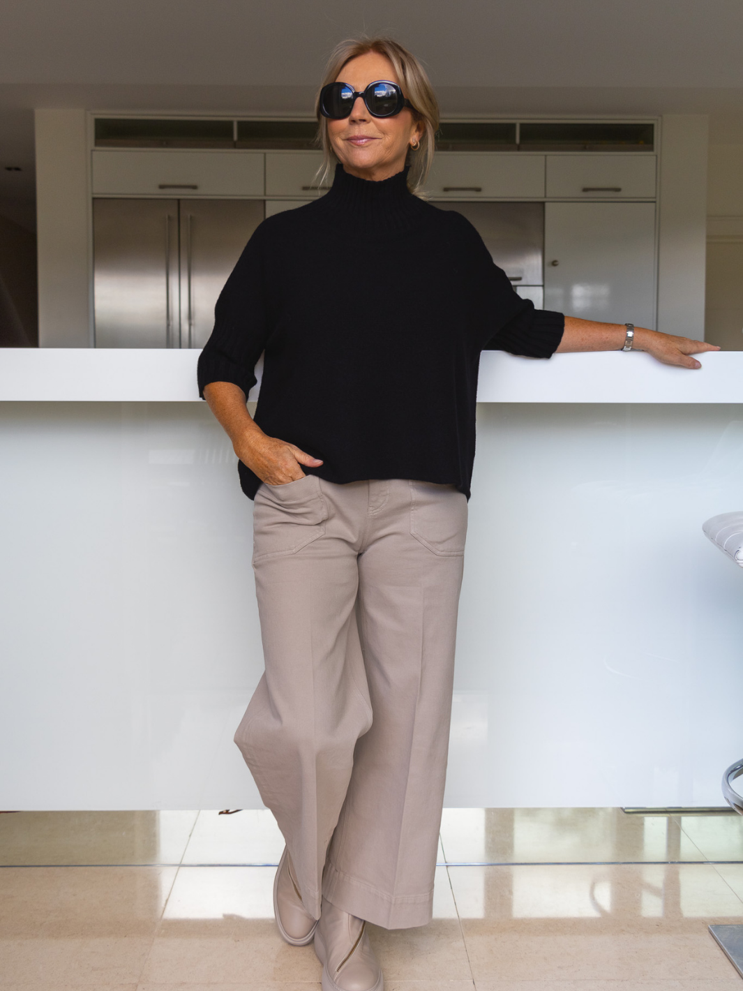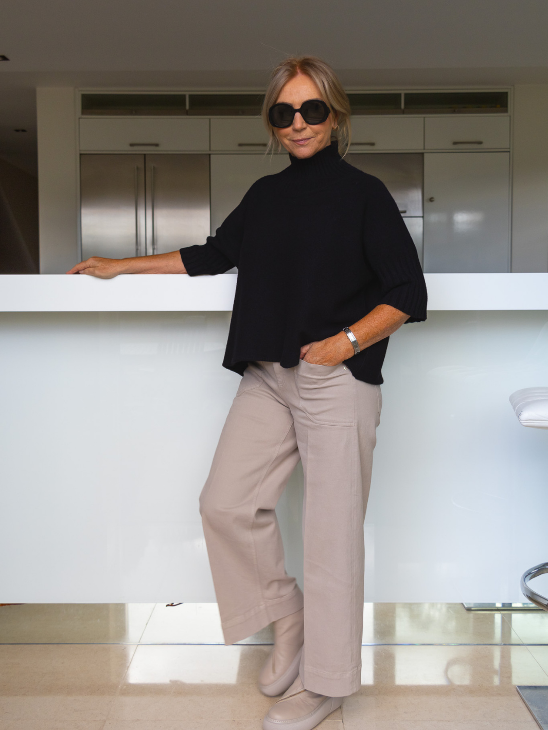 The Josep Classic in chic Black features a deep ribbed high neckline and elbow-length sleeves with matching rib detail. Its relaxed silhouette makes it easy to style for any occasion — pair with jeans or trousers for a casual chic look, or dress it up with a satin bias-cut skirt.