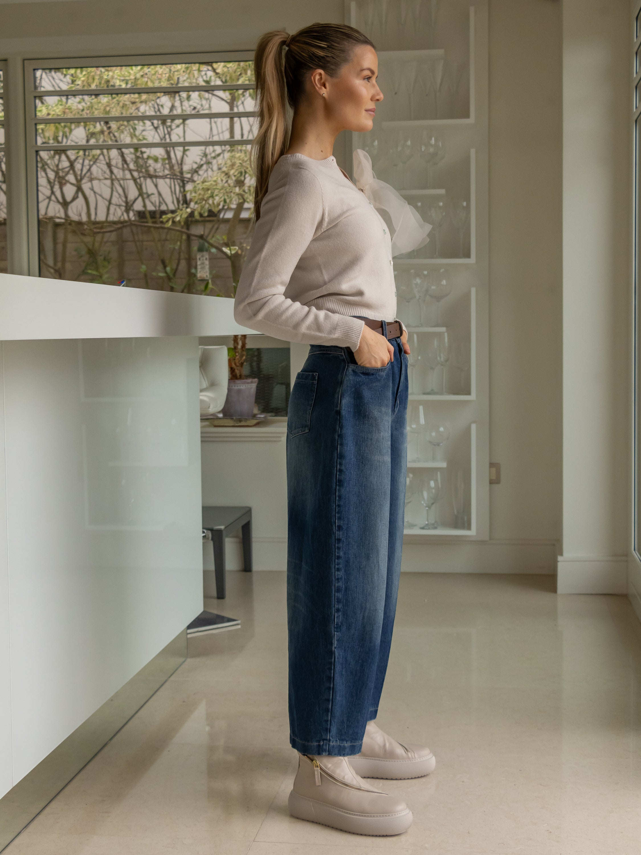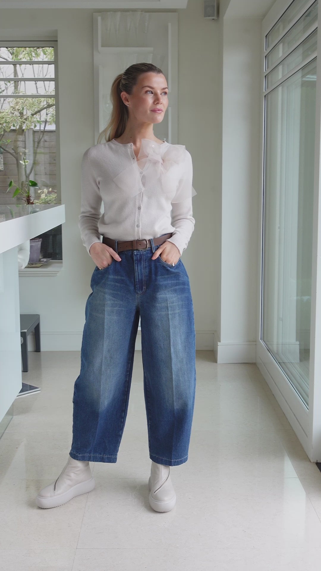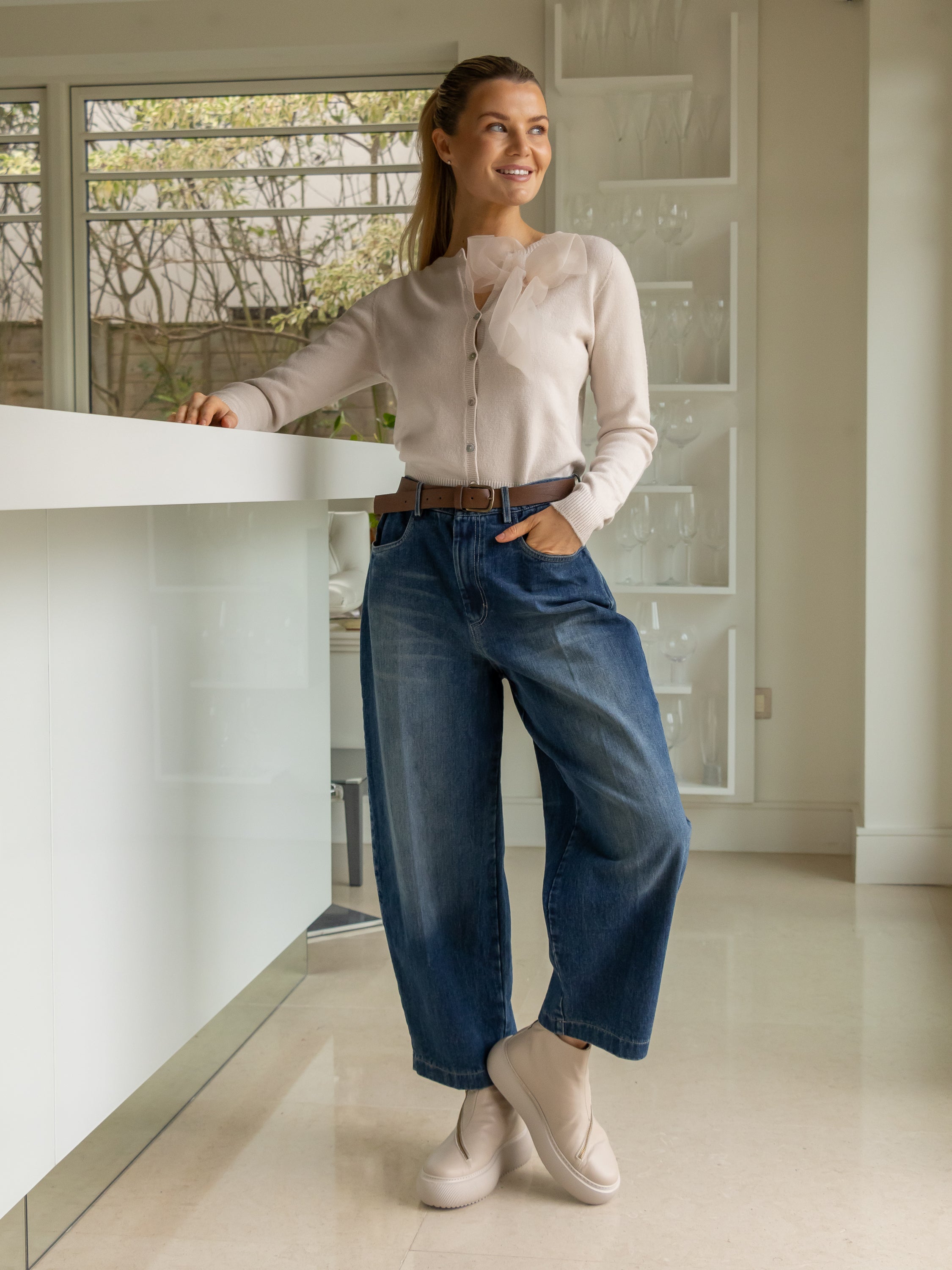 A feminine twist on a timeless classic. The Beau Cardigan features a detachable organza bow that adds a soft, romantic touch to this beautifully simple knit. Designed in a flattering one-size fit, it drapes effortlessly for a polished yet relaxed look — perfect for elevating everyday denim or pairing with tailored separates.