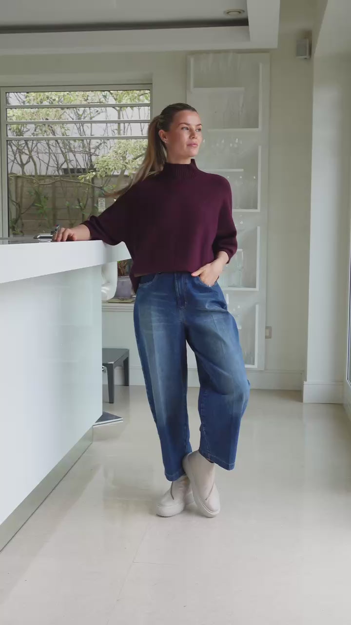 The Josep Dip Back is a modern twist on a classic knit, designed in this season's rich bordeaux colour. Cut with a relaxed fit, it features a high ribbed neckline and 3/4 length sleeves with dramatic ribbed cuffs.