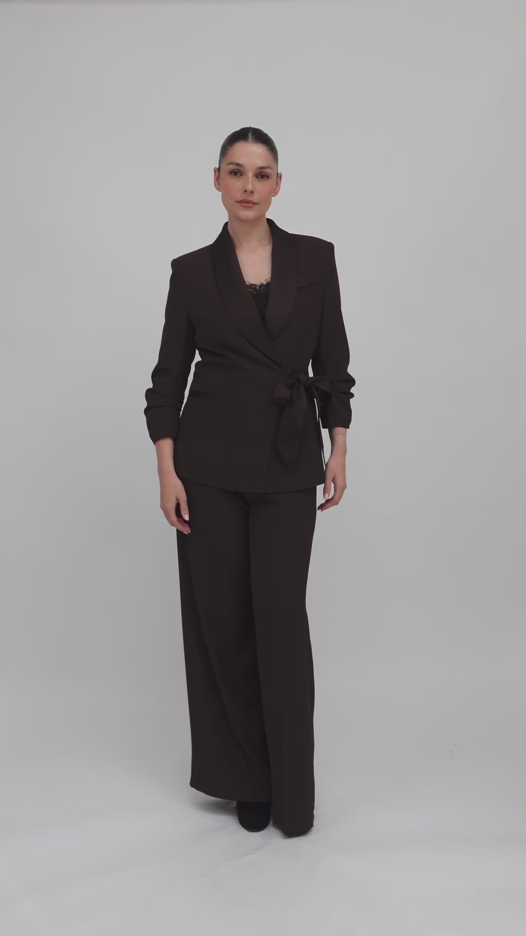 Blazer with ribbon tie and satin-effect lapel in in Chocolate Brown