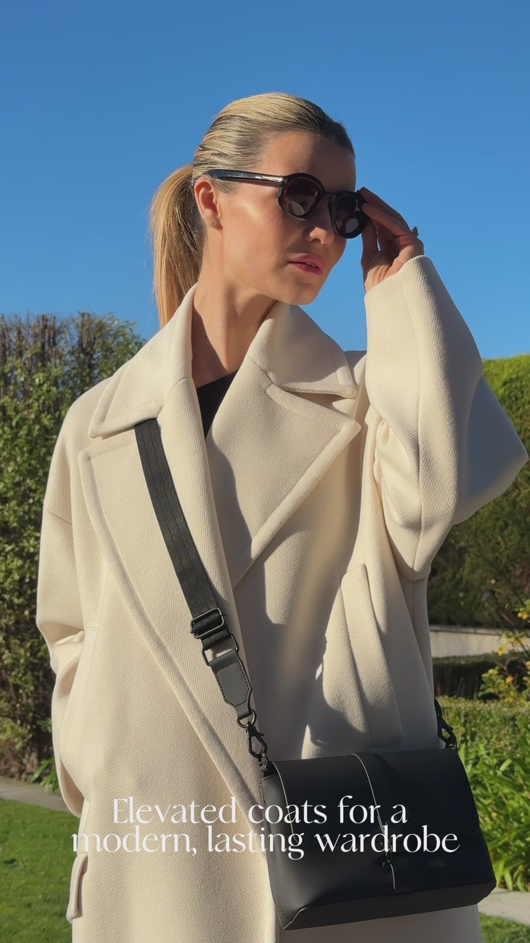 The best-selling silhouette from our Italian Collection, the Garbo is now available in Cream. Full in length and oversized in style, this timeless coat is designed to elevate your winter wardrobe. It features an exaggerated lapel collar, functional pockets, and a single-button closure. The luxurious fabric and impeccable cut ensure this is a coat you'll reach for on repeat. Effortlessly stylish, endlessly wearable.